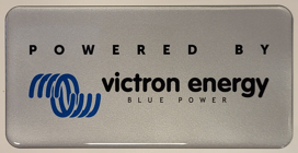 Tykt klistermærke med teksten "Powered By" og Victron Energy logo