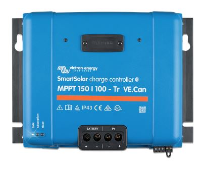 MPPT VE.Can SmartSolar-opladeren forbinder til et PV-panel på 150 eller 250 Volt Cod og vil automatisk opdage og oplade dit 12, 24 eller 48V batteripanel med en spænding mellem 70A-100A, afhængigt af modellen.
