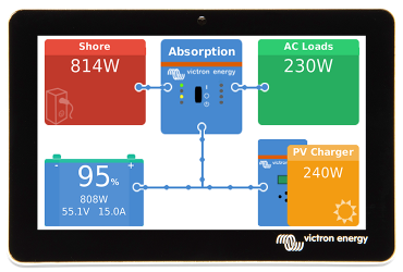 GX Touch 50 er tilbehør til det helt nye kommunikationsmodul Cerbo GX, som giver dig perfekt kontrol over dit system uanset hvor du befinder dig. Tilslut let og enkelt via vores Victron Remote Management (VRM) portal, direkte via GX Touch 50, en MFD eller via VictronConnect app'en takket være indbygget Bluetooth.